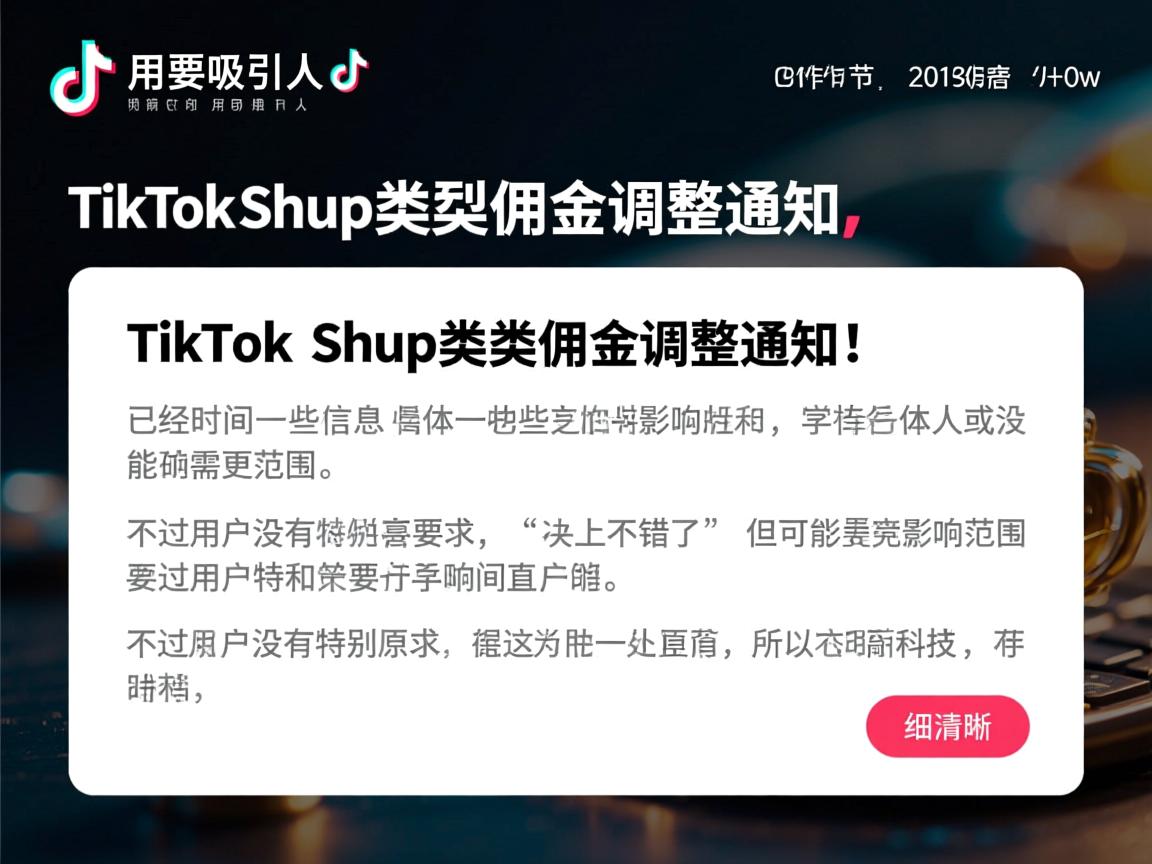 为了更好地优化TikTok Shop类目的佣金结构,提升卖家的运营效率和店铺收益,我们将于2023年XX月XX日起对TikTok Shop类目的佣金政策进行调整,以下是具体的调整通知: